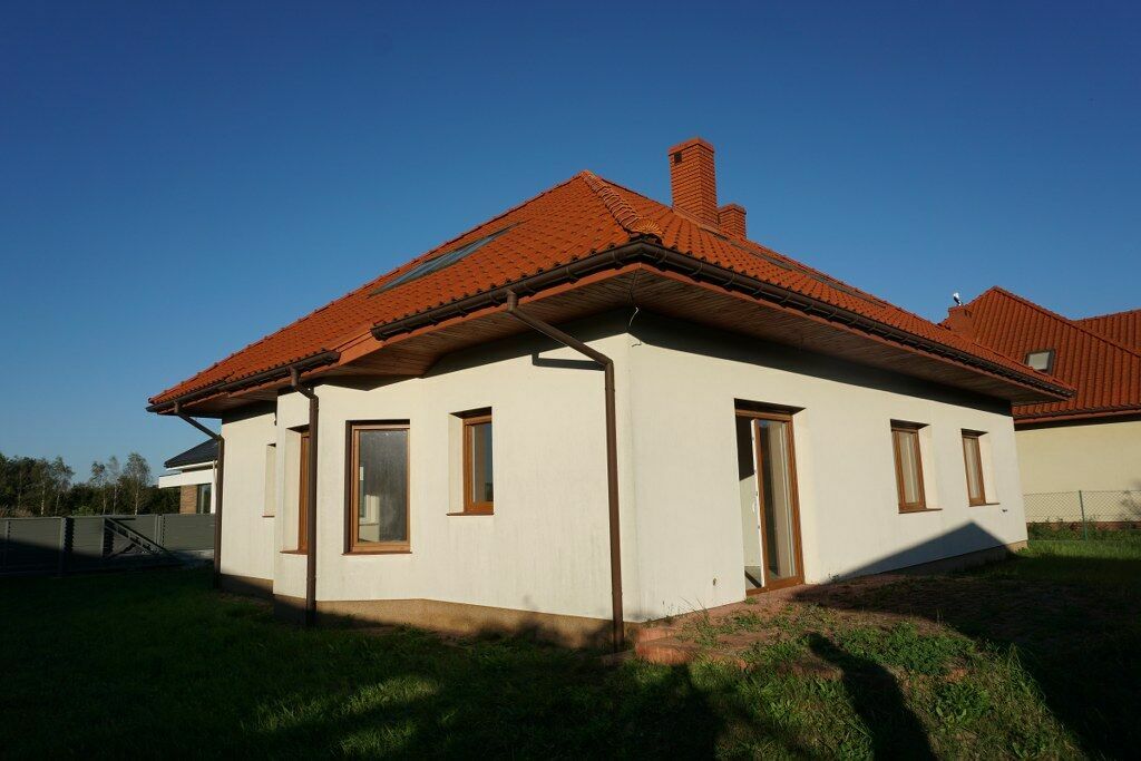Dom położony jest na 9 arowej działce, ogrodzonej, z bramą wjazdową przygotowaną do montażu siłownika.Jest to budynek parterowy z poddaszem użytkowym, którego bryła nawiązuje do tradycyjnego stylu dworkowego.